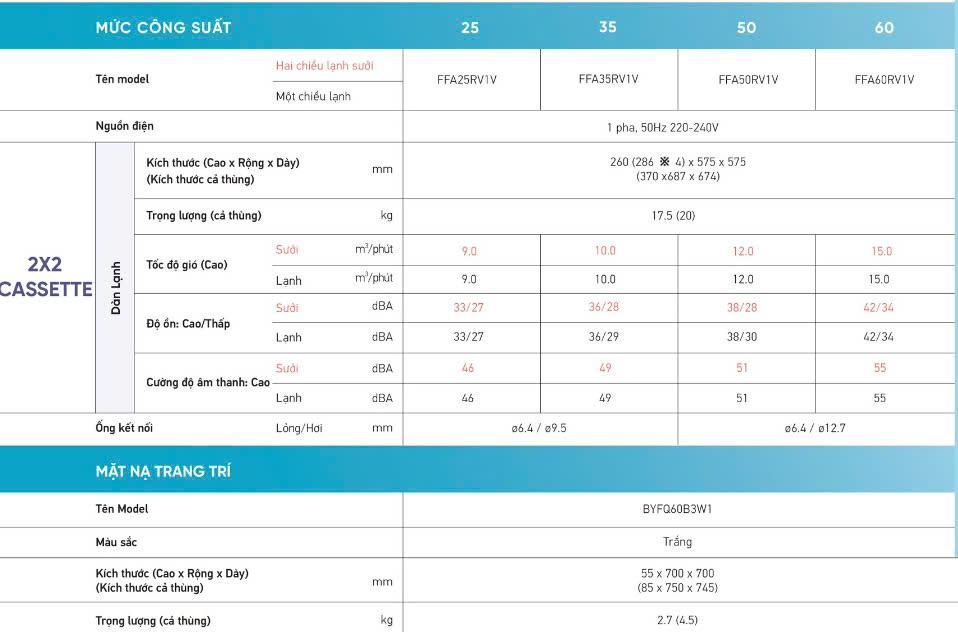 Thông số kỹ thuật dàn lạnh âm trần Multi NX Daikin FFA35RV1V 1.5HP