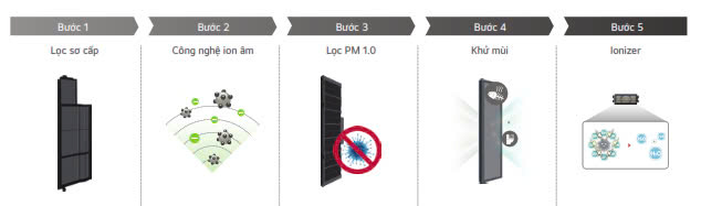- Bước 5: Ionizer: Vô hiệu hóa các loại vi khuẩn, vi-rút gây ngộ độc thực phẩm và viêm phổi