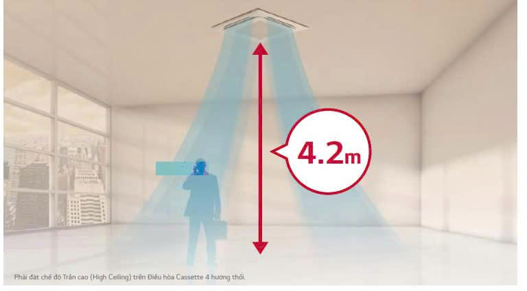 Máy lạnh âm trần LG ZTNQ30GNLE0 có cột gió cao lên tới 4.2m