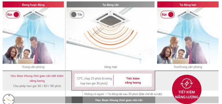 Máy lạnh âm trần LG Inverter 3.0 HP ZTNQ30GNLE0 có hệ thống cảm biến vật tắt khi có người sử dụng