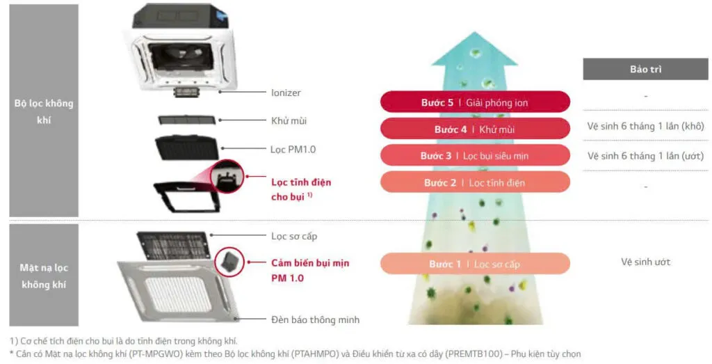- Bước 3: Lọc PM 1.0: Loại bỏ tới 99% bụi mịn tới bụi siêu mịn (Có thể loại bỏ PM 1.0)