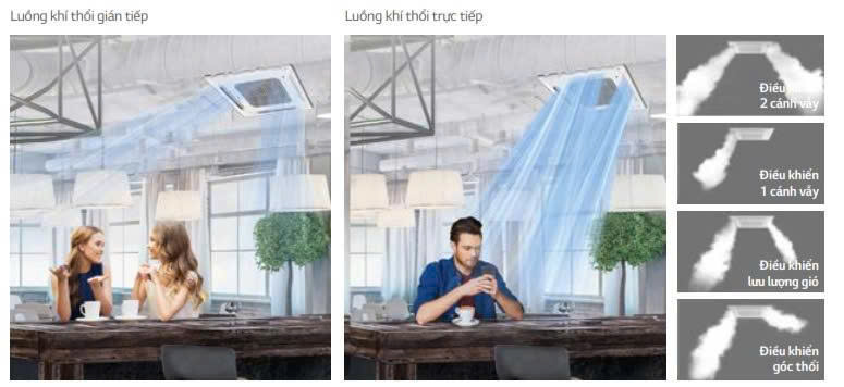 Nhờ luồng gió 4 hướng và khả năng làm lạnh mạnh, máy đảm bảo nhiệt độ đồng đều toàn không gian, kể cả trần cao.