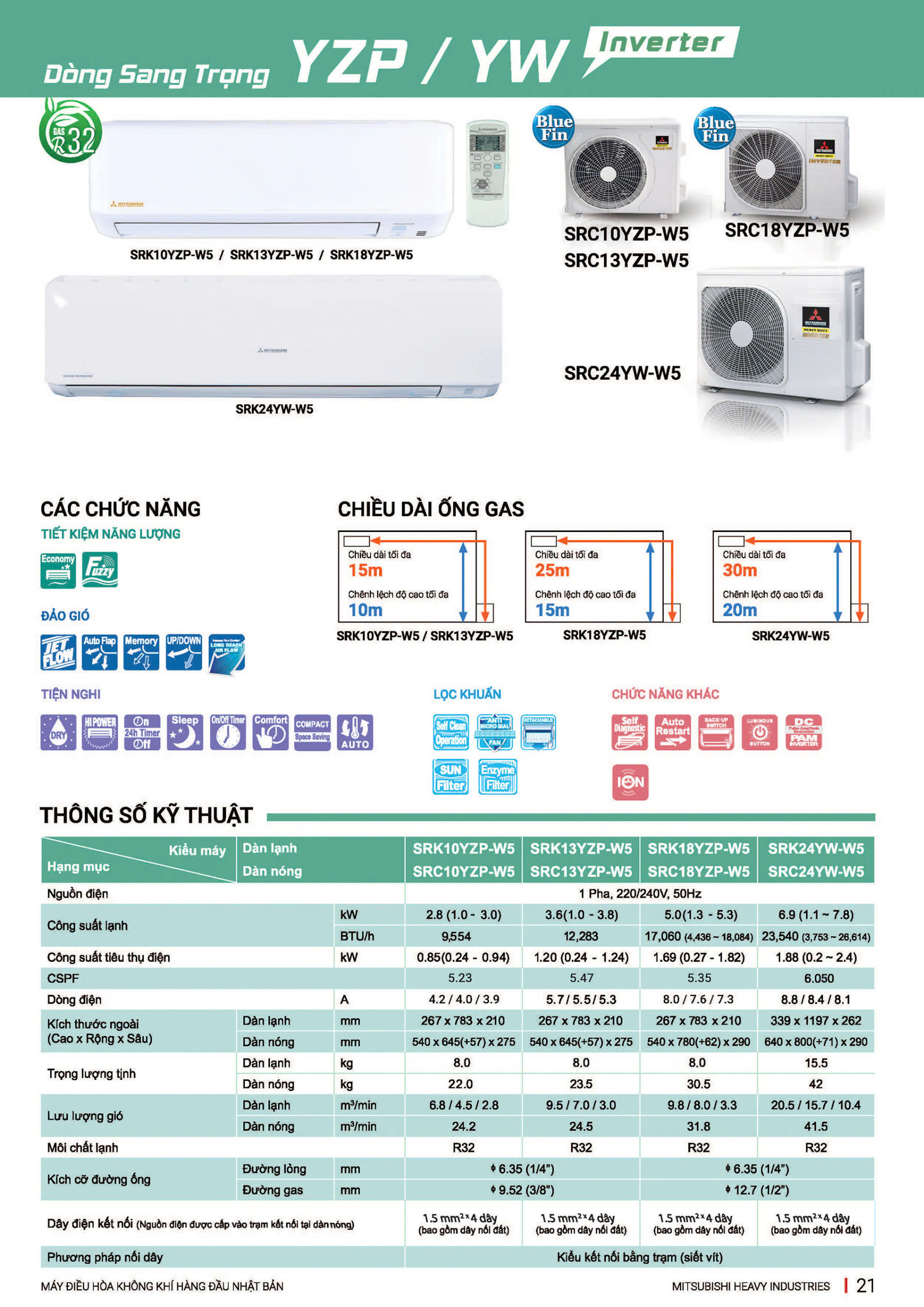 Thông số kĩ thuật Máy lạnh Mitsubishi Heavy 2.5Hp, inverter SRK24YW-W5