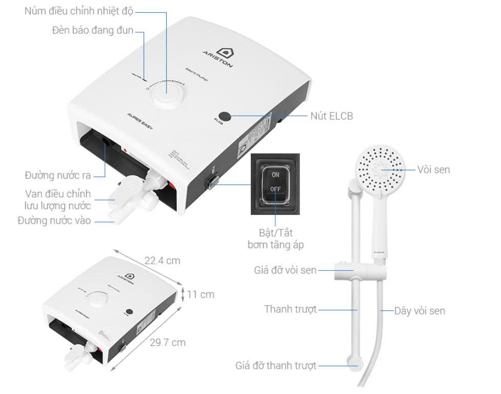 Thông số kỹ thuật Máy nước nóng trực tiếp Ariston AURES EASY 4.5P