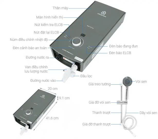 Thông số kỹ thuật Máy nước nóng trực tiếp Ariston AURES PREMIUM+ 4.5