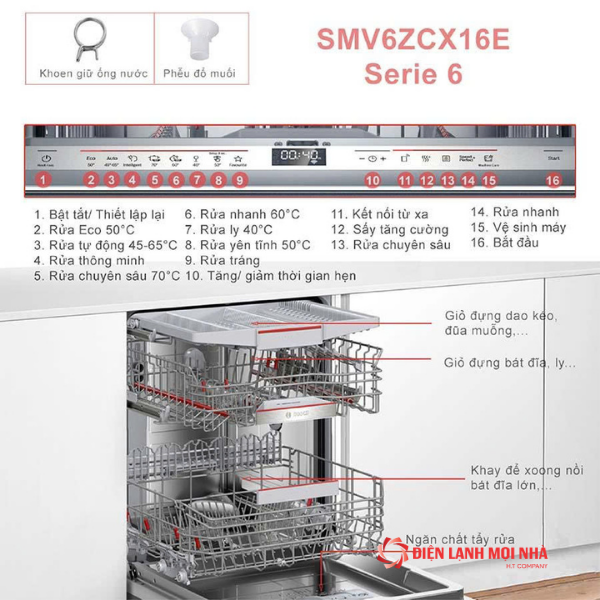 Thông số kĩ thuật Máy rửa bát Bosch SMV6ZCX16E serie 6, âm tủ