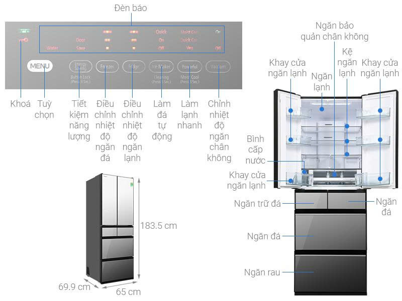 - Công nghệ bảo quản thực phẩm:Cấp đông tươi ngon Delicious Freezing (Ngăn trên cùng). Ngăn rau quả Aero-care (Chỉ ngăn dưới).