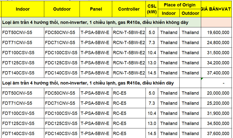 GIÁ BÁN MÁY LẠNH ÂM TRẦN MITSUBISHI HEAVY MỚI NHẤT