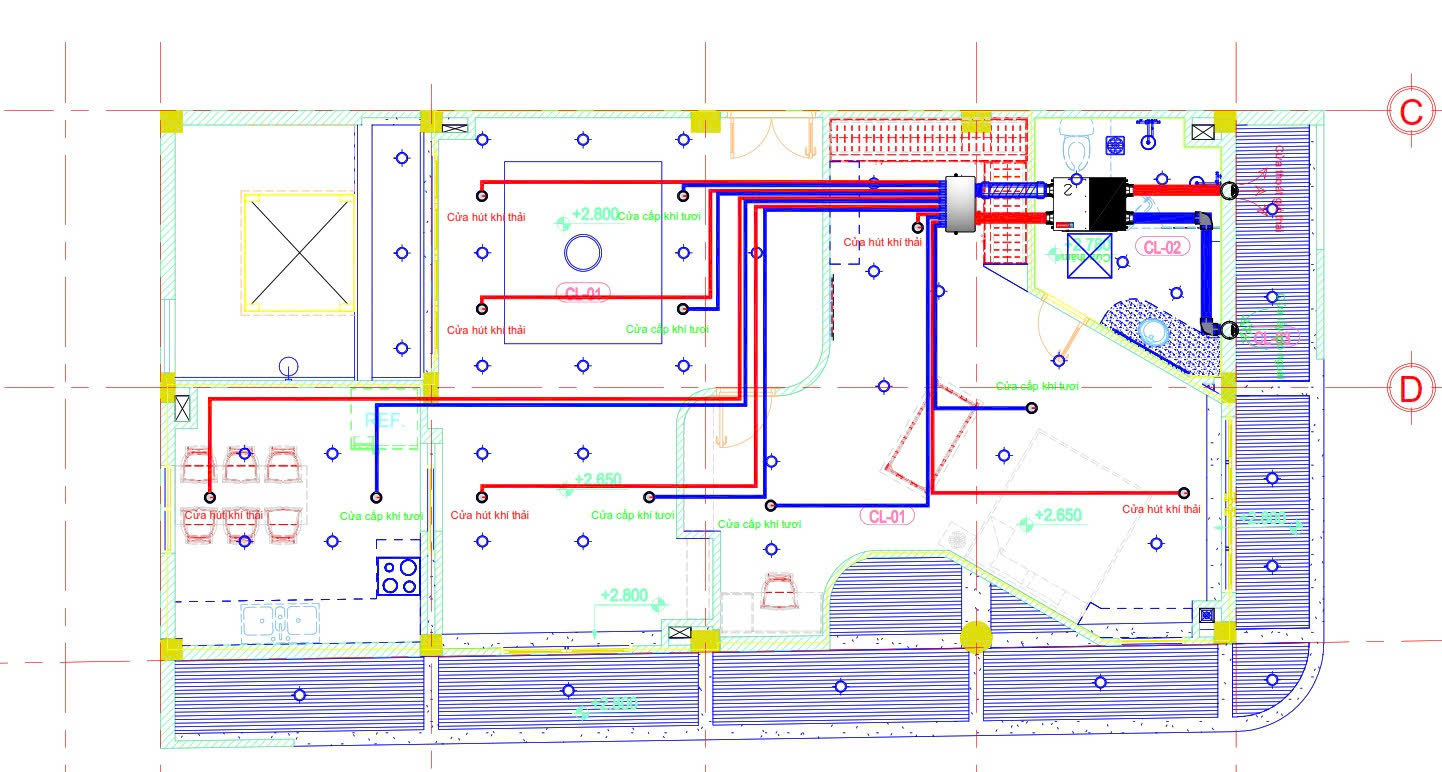 Sau khi được lọc sạch, không khí sẽ được phân phối thông qua hệ thống ống gió tới toàn bộ các phòng trong nhà.