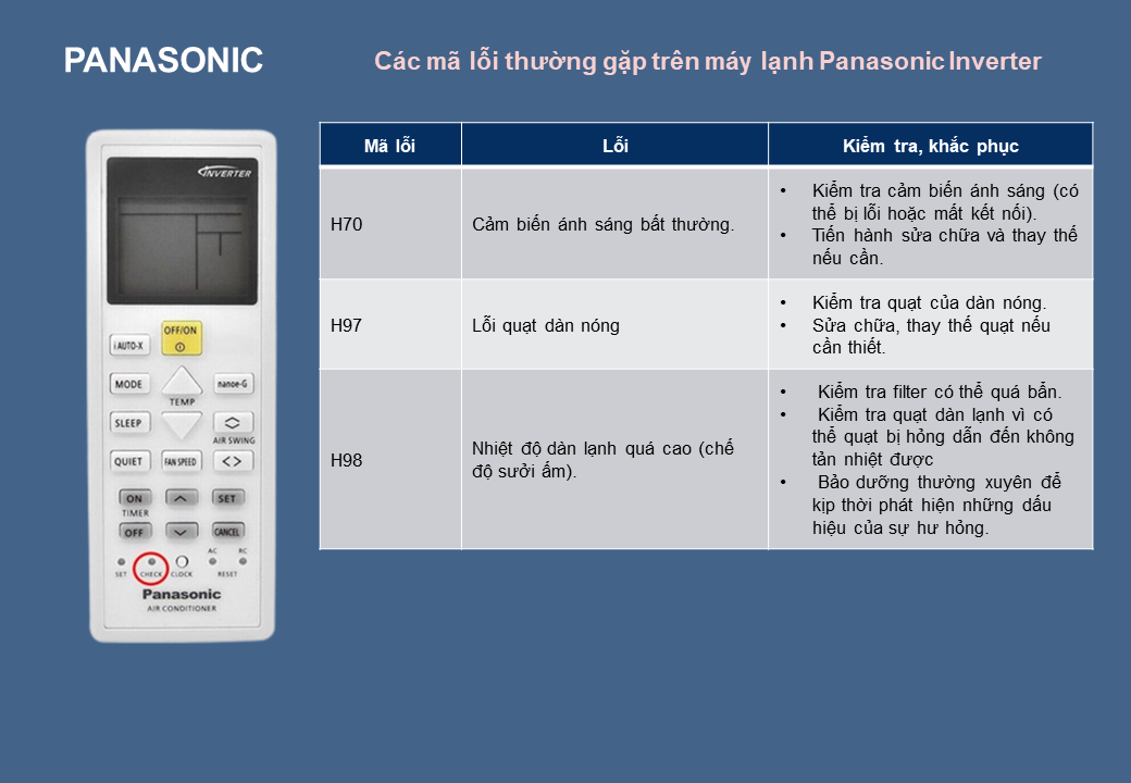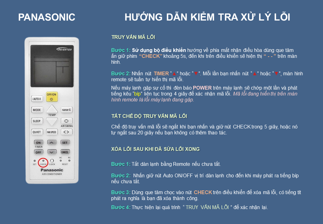 Sau đây Điện Lạnh Mọi Nhà sẽ hướng dẫn các bạn kiểm tra điều hòa Panasonic khi bị sự cố bằng Remote máy lạnh,