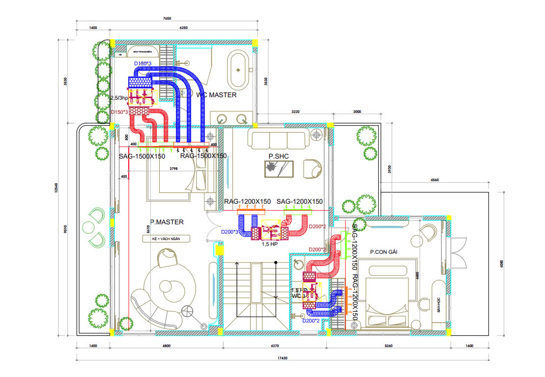 • Dàn lạnh giấu trần nối ống gió loại áp suất trung bình+ bơm nước ngưng FXSQ63PAVE9  – 2.5HP cho phòng ngủ master+ phòng giải trí lầu 2