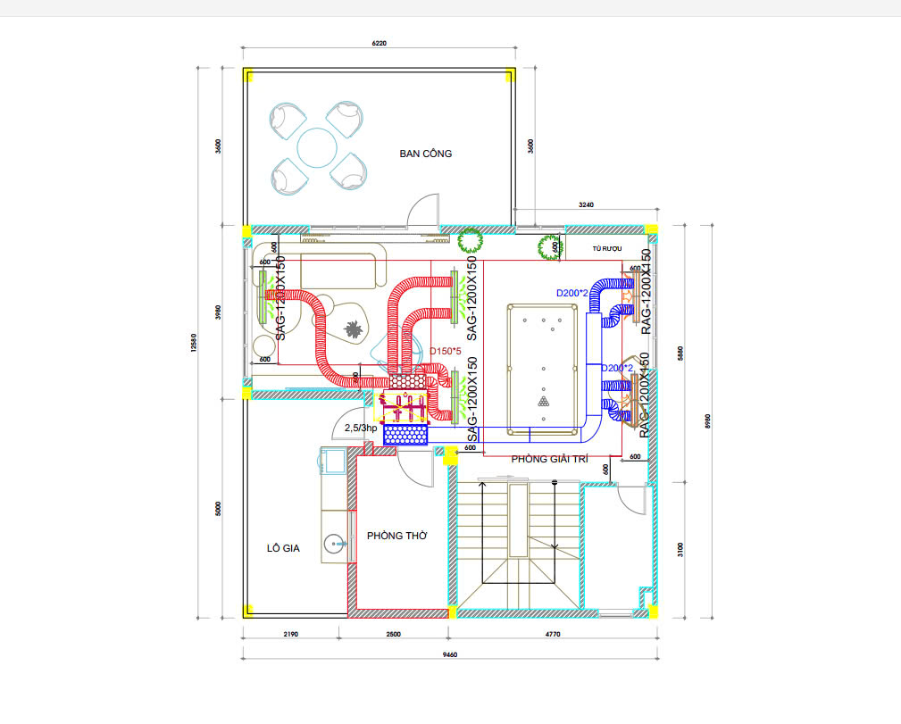 • Dàn lạnh giấu trần nối ống gió loại áp suất trung bình+ bơm nước ngưng FXSQ63PAVE9  – 2.5HP cho phòng ngủ master+ phòng giải trí lầu 2
